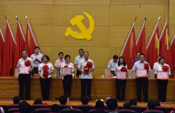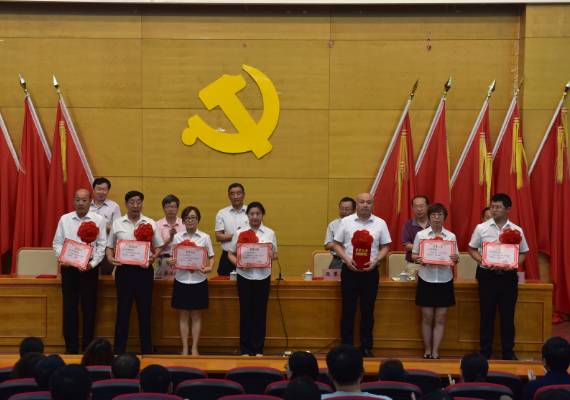 6月29日,我院党委召开“敢担当、有作为,争当新时代楷模”主题党日暨“七一”表彰大会,隆重纪念中国共产党成立97周年,学院党委书记贾军,党委副书记、院长张策,党委委员、副院长苏林鹏,党委委员、教务处处长仇文君,党委委员、学生处处长逯全仓,党委委员、宣传部部长潘井以及全院党员、要求入党积极分子参加了表彰大会。