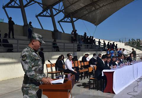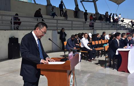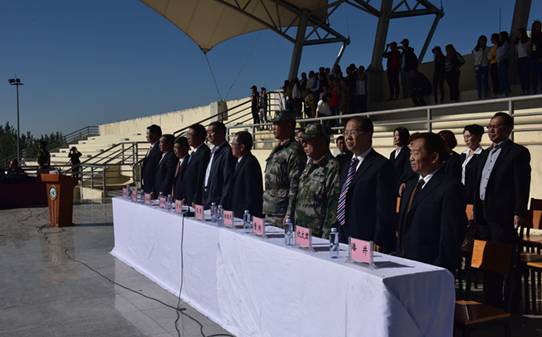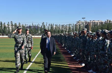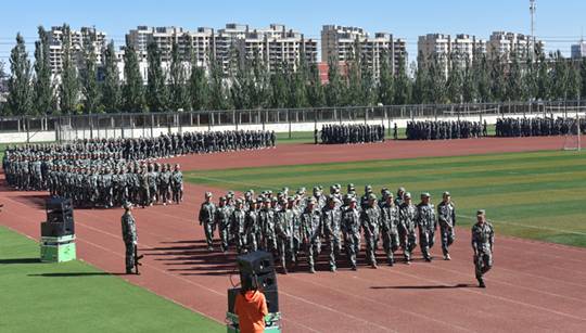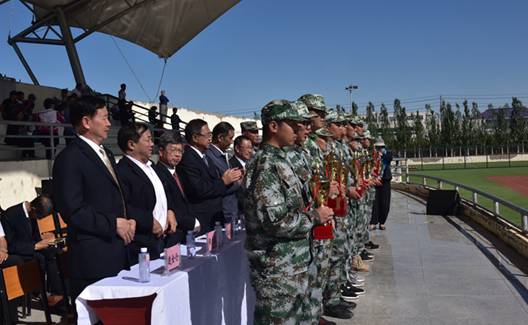 9月11日上午,我院 2017级新生开学典礼暨军训总结表彰大会在学院运动场隆重举行。院党委书记贾军,党委副书记、院长张策,党委委员、副院长方招祥、苏林鹏,党委委员侯文彪、仇文君、逯全仓、潘井、中国人民解放军31401部队82分队连长郝瑞民、内蒙古交通职业技术学校校长董超等同志及全院教职工和2017级新生共2400余人参加了大会。