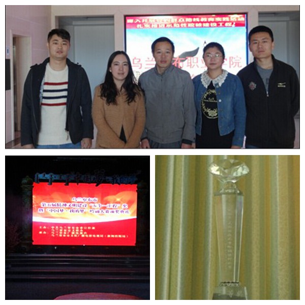由我院党委宣传统战部组织,学生处佟力副处长指导,乌丽雅苏、郭宇、苑丽辉、王彦楠四位老师朗诵的《我的梦,职教梦,中国梦》代表学院参加了本次比赛,他们以饱满的精神面貌、铿锵有力的朗诵技巧得到各评委的认可。最终荣获二等奖,为学院争得了荣誉。荣誉的取得实属来之不易,四位老师利用暑假不辞辛苦历经多次排练而取得。