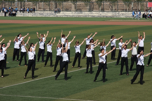 5月22日下午,在学院田径场上隆重举行了2014年第九套广播体操汇操比赛。共计20支代表队1000多名师生参与了活动,全体参赛师生发扬团结一致、奋发向上的精神,用整齐的步伐、标准的动作、飒爽的英姿来体现了我院师生的风采。