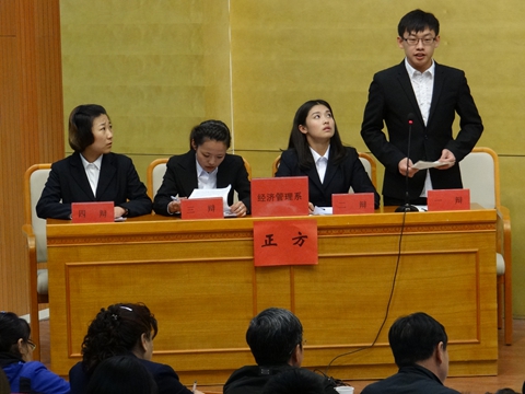 为了丰富大学生的校园生活,活跃人文气氛,展现大学生的个人魅力和风采,我院于2014年4月26日在学术报告厅举行“放飞梦想 尽责圆梦”第五届大学生辩论赛决赛。
