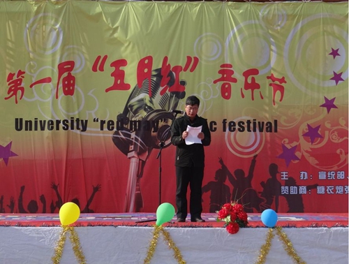 为了丰富广大师生的业余文化生活,营造向真、向善、向美的校园文化艺术氛围;为学生展示个人才艺与风采搭建舞台;为培养广大学生高雅的艺术欣赏能力和艺术表现能力,我院策划了“五月红”音乐节活动,并于2014年5月12日在学校钟楼广场举办了第一届“五月红”音乐节开幕式。