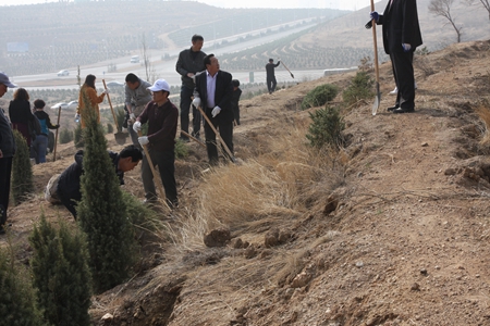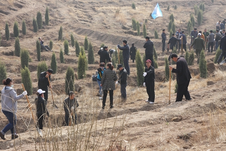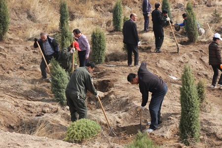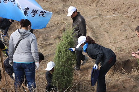 根据乌兰察布市、集宁区两级党委、政府的有关文件精神,4月11、16日我院党政领导带领全院师生,来到卧龙山机关义务植树基地参加植树活动。