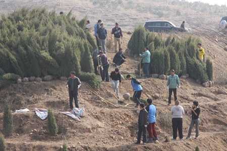 卧龙山机关义务植树基地是市区两级党委、政府确定的全市机关义务植树基地,目标是利用3-5年的时间彻底改变卧龙山原有的面貌,让卧龙山披上绿装。2013年是义务植树基地建设的第一年,当年完成绿化面积7000亩,成活率达到90%以上。2014年将在巩固已有绿化成果的基础上,计划绿化面积1800亩,栽植油松、樟子松、山桃等苗木11万株。市区两级165个行政事业单位的16500多位干部职工参加义务植树。