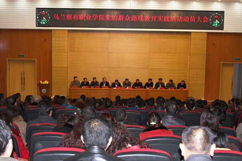 2014年3月3日下午,我院在行政楼学术报告厅隆重召开党的教育实践活动动员大会,认真学习贯彻中央精神,对学院教育实践活动进行动员部署。乌兰察布市委第19督导组组长、市政协副主席魏毅同志,督导组副组长冯孝忠同志及督导组成员出席会议。学院党委书记陶克涛同志作动员讲话,学院党委副书记、院长张策主持会议,学院党委成员赵子平、方招祥、苏林鹏、孙成明、候文彪、仇文君、逯全仓等出席会议,在校教职工,部分退休院领导、处级干部及党员,学生党员代表参加了会议。
