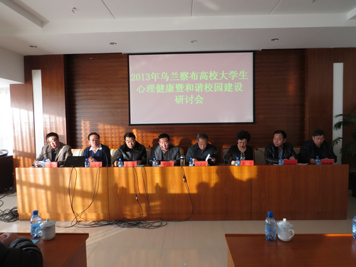 2013年12月20日8:30,以“关爱青春,和谐校园”为主题的2013年乌兰察布高校大学生心理健康暨和谐校园建设研讨会在我院行政五楼会议室隆重召开,内蒙古党委高校工委思想政治与学生工作部部长、内蒙古教育厅高校思想政治与学生工作处处长常柱,我院党委书记陶克涛,内蒙古农业大学学生处副处长兼心理中心主任孟斌,集宁师范学院副院长许卫,乌兰察布医学高等专科学校副校长刘向东,我院党委副书记、纪检书记赵子平,我院副院长方招祥,我院副院长苏林鹏出席。我院学生工作处、综合能力教学部、团委、保卫处负责人,各系部书记、主任、分管副书记、学工办主任,辅导员及心理教师代表参加了会议。