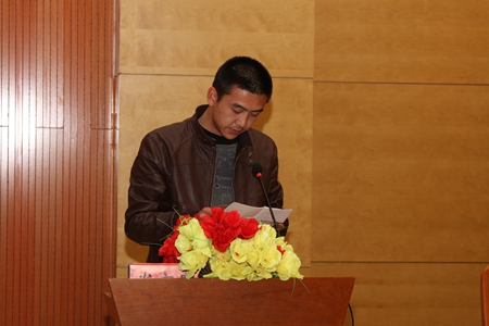 捐赠仪式首先由方招祥同志代表学院党委做了讲话,通报了周小龙同学患病和我院为周小龙同学捐款的情况。然后,学生家长、周小龙的哥哥刘小刚代表周小龙全家致感谢词,代表周小龙家长向全院师生表达了由衷的谢意。学生代表、生物技术系2012级园林技术一班周廷同学介绍了周小龙同学个人情况和园林一班为周小龙同学捐赠的情况,并代表周小龙所在的园林一班向全院师生致谢词。最后,院党委副书记赵子平向学生家长捐赠款额,学生家长向学院赠送了锦旗。