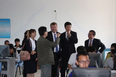 上午,在张策院长等的陪同下, 维德森校长一行漫步校园,参观了各专业实习实训室、学生活动中心、学生宿舍,走进教室观摩课堂教学。美丽大气的校园给他们留下了深刻的印象。完备先进的硬件设施得到他们的高度认可。随后在三楼会议室双方着重就合作开展“3+0”的专业教育进行了洽谈,包括课程设置、教学计划等细节问题交换了意见,关于师生互访交流等项目达成了初步的合作意向。