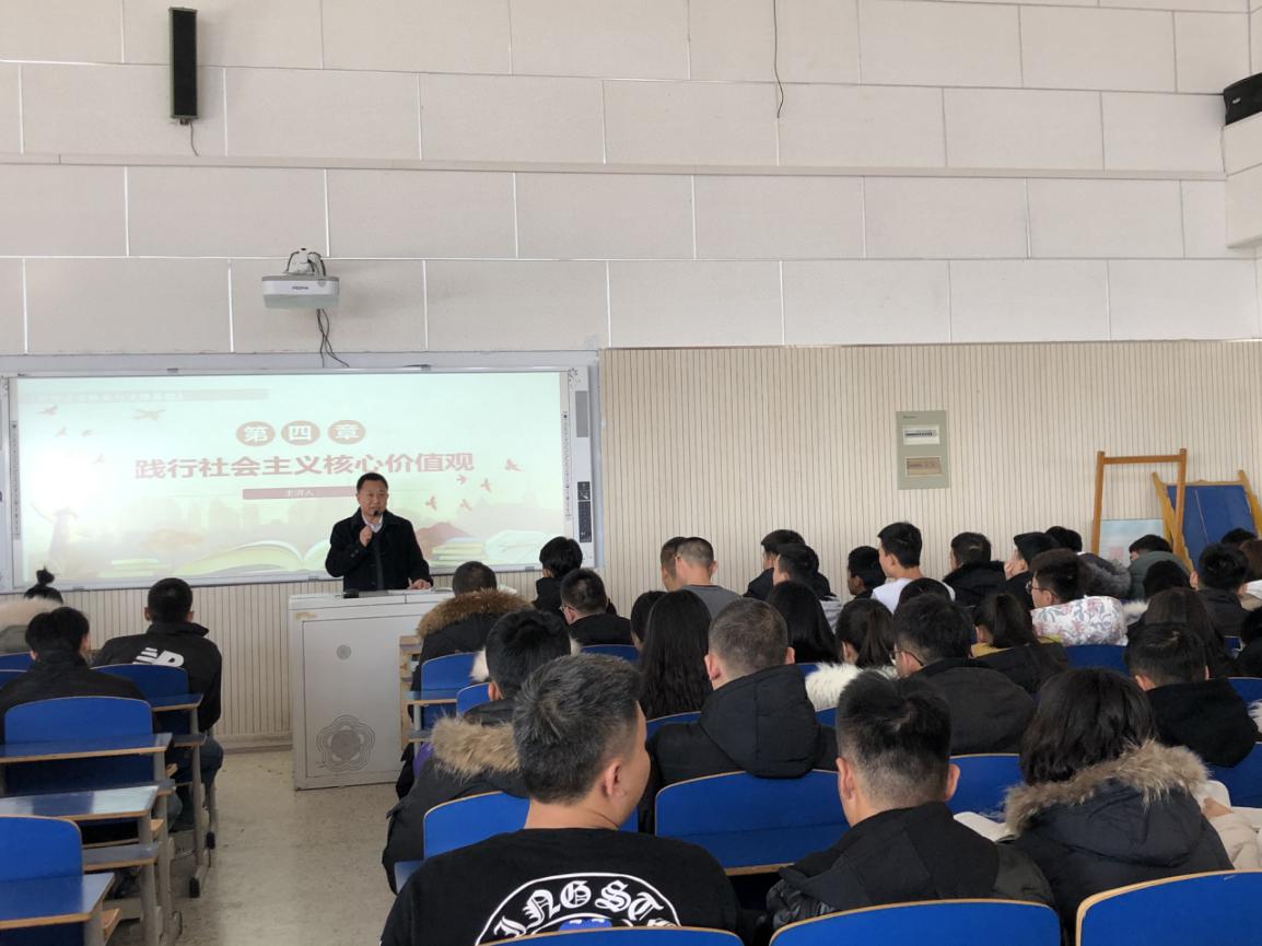 2019年12月9日上午,best365中国官方网站党委副书记、院长顾建峰在教学楼C306为1705空乘、19级空乘、19级旅游管理班的学生讲授了一堂题为“践行社会主义核心价值观”的思政课。