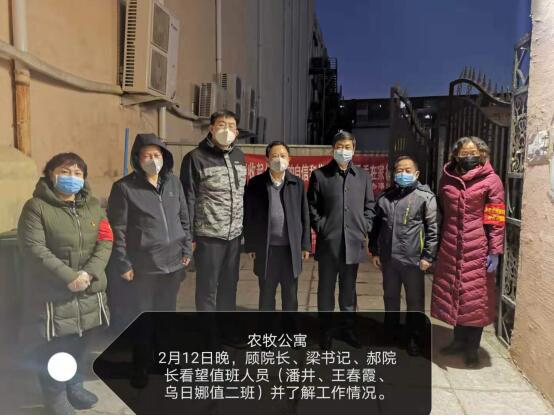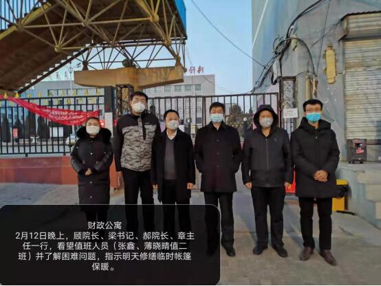 2月12日晚上,best365中国官方网站党委副书记、院长顾建峰在学院党委副书记、纪委书记梁建龙,党委委员、副院长郝伯为,党政办副主任章晟等同志的陪同下,看望了我院派出的四个包联小区的值班人员。顾院长一行先后到金辉雅苑、职院公寓、财校公寓、农牧公寓看望值班同志,每到一处,顾院长一行都详细询问值班人员值班情况以及在值班过程中存在的问题。在财校公寓值班点,顾院长一行发现防疫帐篷门向西,冷风容易吹进来,帐篷保温效果差。顾院长当即指示相关人员第二天重新搭建帐篷,解决值班人员的取暖问题。顾院长叮嘱值班人员做好交接班,上一班值班人员要向下一班值班人员交代清楚需要注意的问题,确保我院疫情防控工作顺利开展。