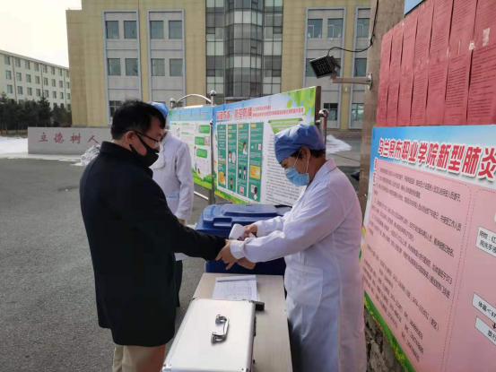 新型冠状病毒感染的肺炎疫情爆发初期,学院医务室斯琴主任凭借多年的工作经验和对专业问题的敏感度,意识到了疫情防控工作的紧迫性和重要性,按照党委的要求,带领医务室全体人员第一时间投入到疫情防控的准备工作,及时收集整理各系部学生的出行情况及身体状况,并按照要求每天上报。在疫情防控一线最重要的就是物资保障,但是当时市场上防护用品紧缺,斯琴主任辗转了集宁区多家药店,也没有买到口罩和体温枪,疫情防控工作难以科学规范开展,她心急如焚。但是办法总比困难多,她在利用好亲朋好友、同学等关系的同时积极和网上商家联系,最后通过多种渠道,终于筹措到口罩、测温枪、消毒液等急需物资,使学院疫情防控点的体温检测防控工作顺利开展。