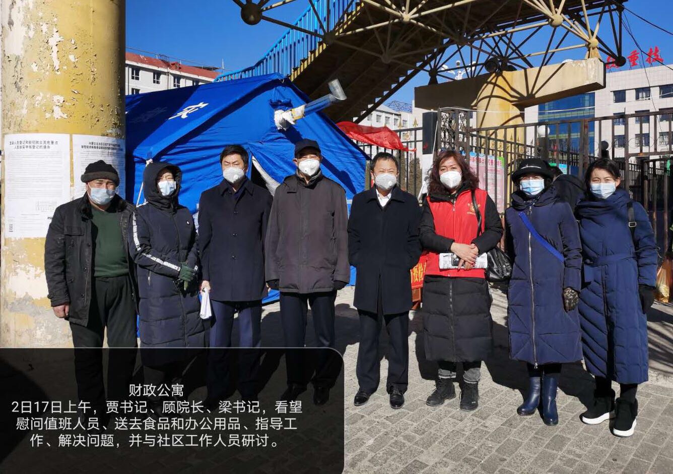 贾书记一行先后来到金辉雅苑、职院公寓、财政公寓和农牧公寓等学院4个包联小区看望慰问值班人员,了解各包联小区疫情防控工作,送去食品和办公用品,解除值班人员后顾之忧。贾书记一行深入防控一线实地调研走访、督导推动工作落实并与社区工作人员互通信息,就如何做好疫情防控工作进行了研讨,同舟共济,科学防治,精准施策,确保疫情防控顺利开展。