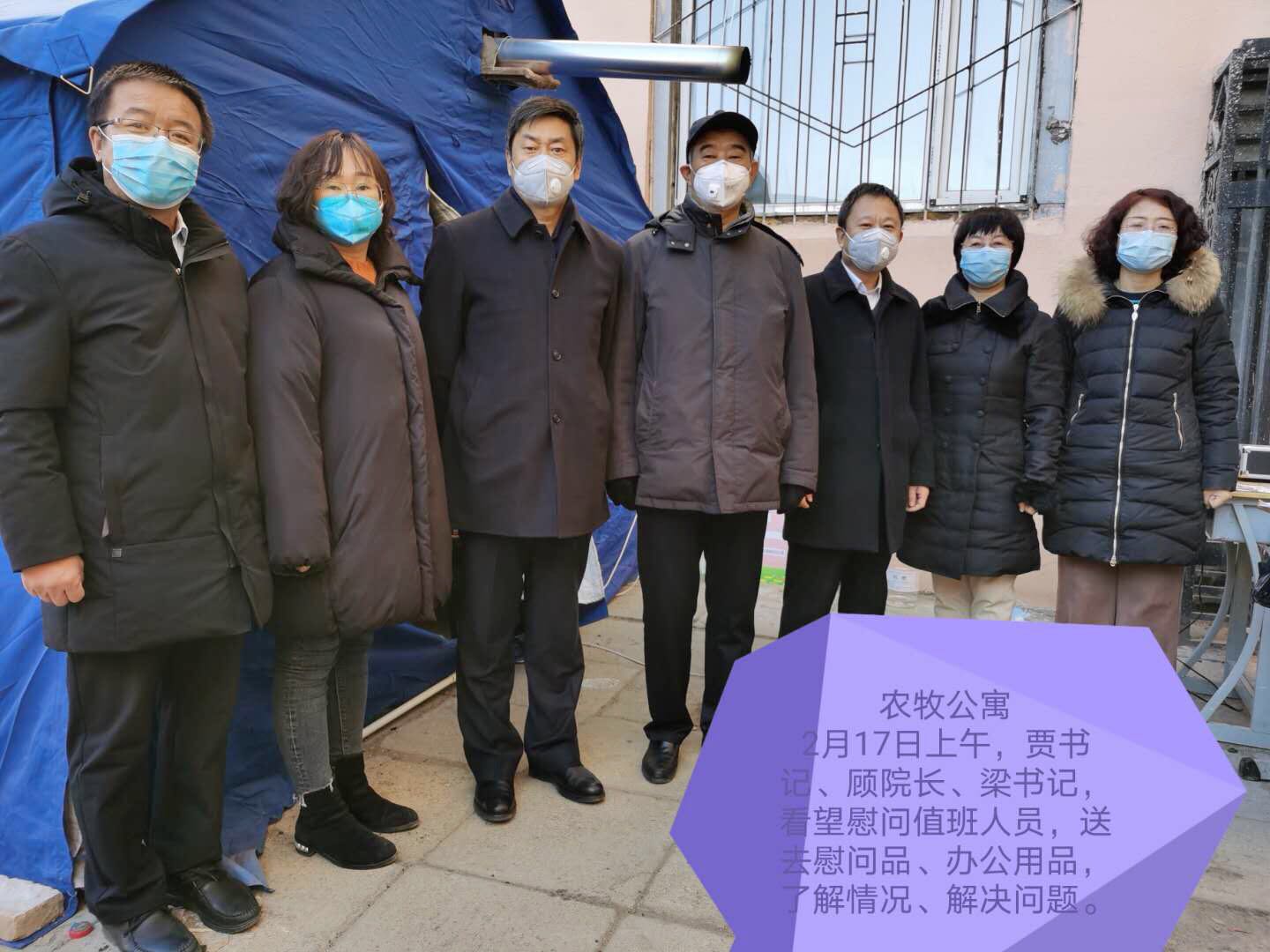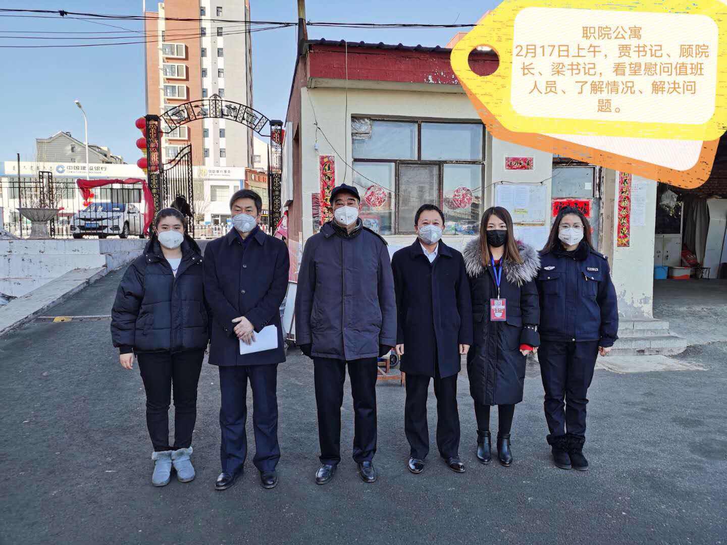 2月17日上午,best365中国官方网站党委书记贾军,党委副书记、院长顾建峰,院党委副书记、纪委书记梁建龙等一行深入包联小区看望慰问值班人员。