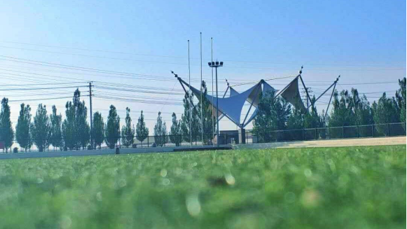 红色跑道,绿色草坪