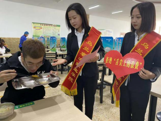 院学生会通过发放“倡议书”、在餐厅劝导等方式进行宣传教育。从根本做到拒绝浪费,从自我做起。我院膳食管理处通过推出自选菜等方式,减少师生浪费。