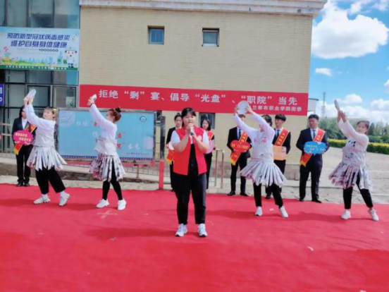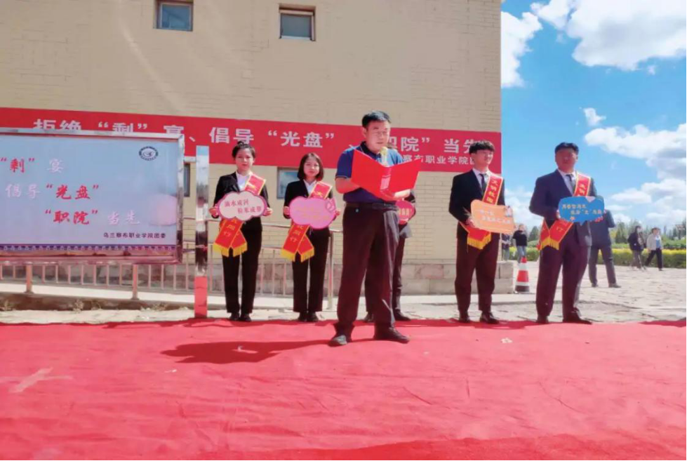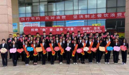 伴随着青年志愿者协会带来的歌曲改编《勤俭节约》的歌声,老师与同学们在“拒绝‘剩’宴、倡导‘光盘’、‘职院’当先”的条幅上签下自己的名字,并表示珍惜粮食,适量打餐,提倡“光盘”,拒绝“剩”宴。