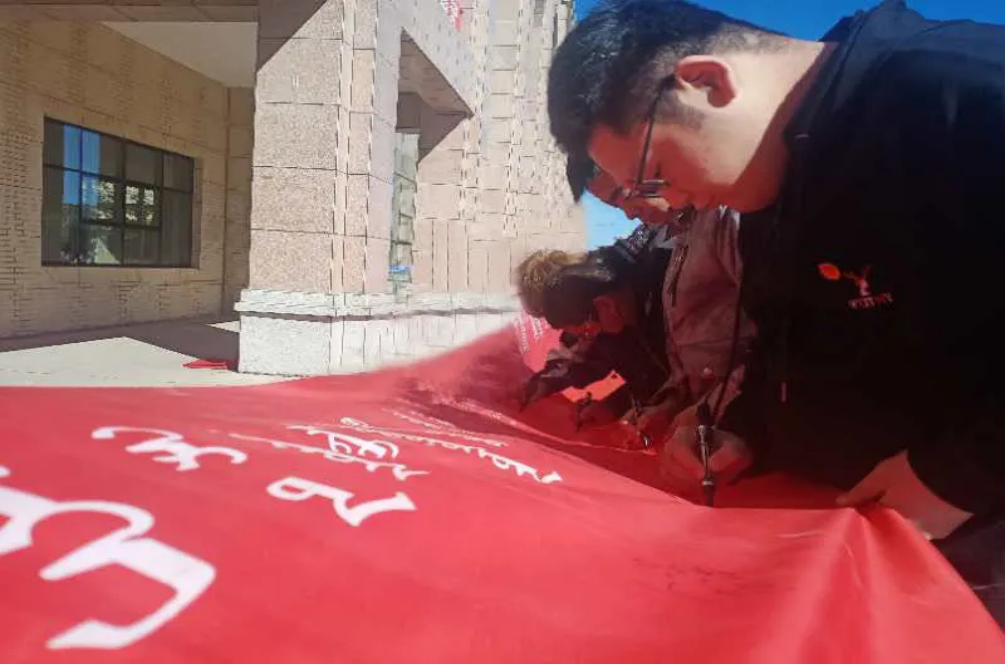 活动最后,全体参会人员在“中华民族一家亲,同心共筑通过本次活动,引导教育学生要牢记历史,以史为鉴,民族团结,弘扬爱国主义精神。中国梦”的红色横幅寄语书写,做出庄严承诺。