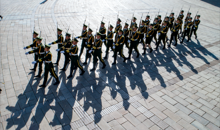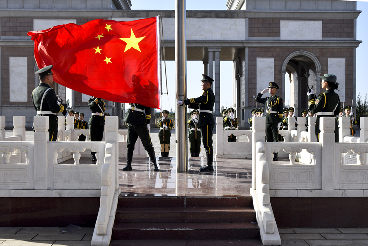 “五星红旗迎风飘扬,胜利歌声多么响亮。歌唱我们亲爱的祖国,从今走向繁荣富强……”升旗仪式结束后,现场所有人心潮澎湃,整齐站立在升旗台北侧齐唱《歌唱祖国》,敬礼伟大祖国。