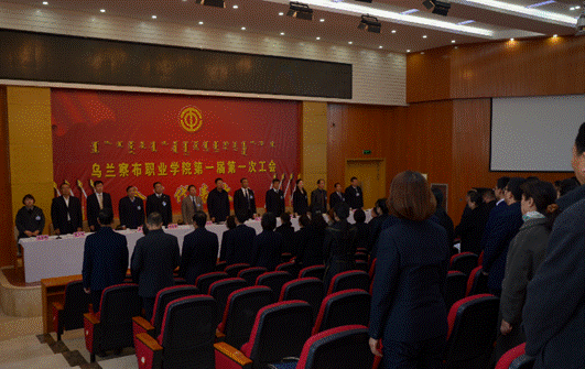 :00,正式会议在庄严的国歌声中开幕。乌兰察布市人大常委会副主任、市总工会主席蔚世林,乌兰察布市市总工会基层和产业工会工作部负责人董洋参加并指导会议,学院党委班子成员、各部门负责人列席参加了大会。