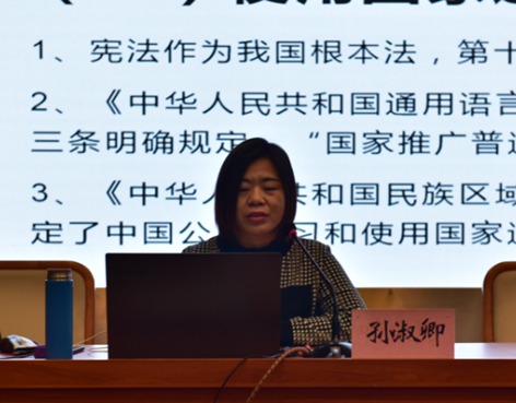 孙淑卿首先站在法律层面讲解了使用国家通用语言文字的法律依据,同时也说明了我国完备的法律体系,对于少数民族语言文字的保护和传承。