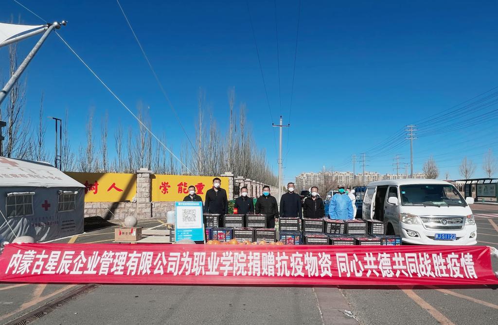 10月28日上午,内蒙古星辰管理有限公司为我院捐赠包括:桔子、苹果、大柚子共计2338斤,价值15012元的水果。学院党委书记贾军,党委副书记、院长顾建峰,党委委员、副院长郝伯为,党委委员仇文君参加了捐赠仪式。