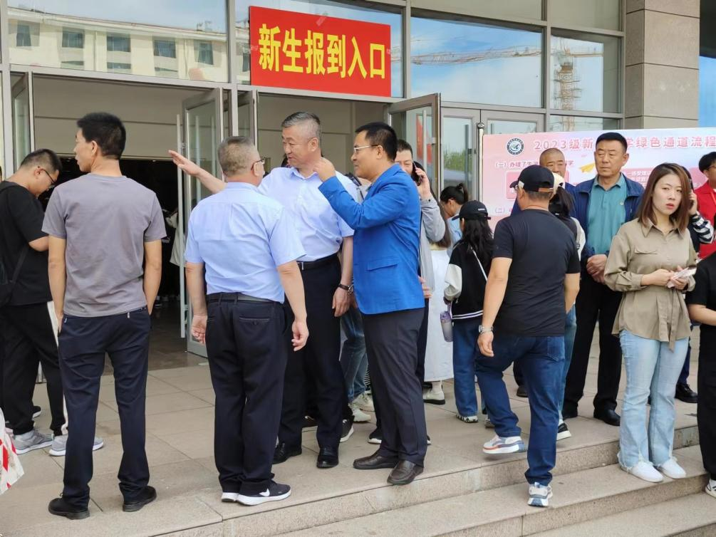 院党委书记郭晓东、副院长白永平,来到了人头攒动却井然有序的新生报到现场,亲切看望2023级新生和新生家长,慰问现场的工作人员和大学生志愿者。