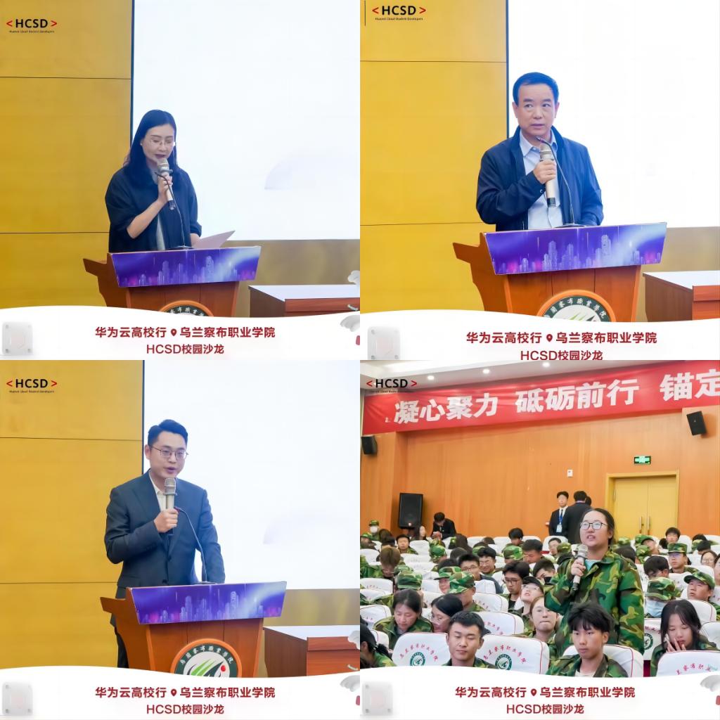 周俊霞副院长开场致辞,对华为公司、乌兰察布市委领导的到来表示欢迎,详细介绍了学院的发展历程,对于新生提出了“学有所成,学有所获”的期许。仝晓林主任希望校企双方形成体系化及常态化的合作,助力高校数字人才的培养,为乌兰察布市高质量发展提供助力。随后华为负责人向同学们介绍了华为相关业务及企业发展,对云计算、大数据、移动互联网的行业发展、就业前景就行详细讲解。
