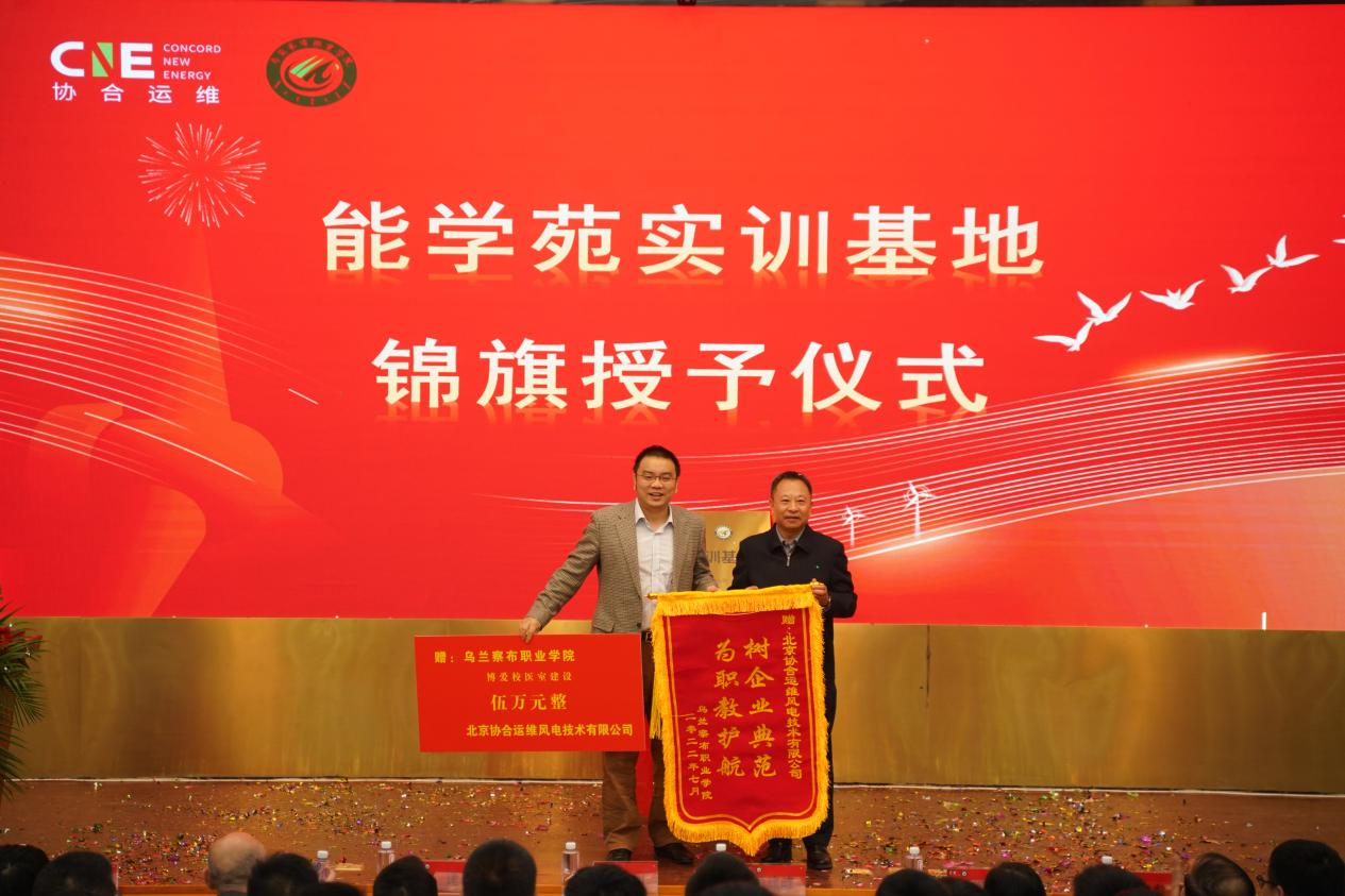 侯文彪处长在致辞中指出,十年来best365中国官方网站一直高度重视与协合运维的合作关系,经过多年努力,校企合作逐步加深,学院专业适应性不断增强,人才培养水平明显提升,基本满足了新能源后服务企业发展对人才的需求。我们双方将以此次揭牌为新的起点,在人才培养、实习实训、社会培训等方面持续开展深度合作,携手开辟产教融合新模式、打造校企合作新典范。希望协合运维继续发挥技术和资源优势,赋能学院,合理打造全国一流的智慧校园、综合能源后市场服务产业基地。今后学院将积极发挥技能竞赛在促进技能人才培养中的作用,大力弘扬劳模精神、劳动精神、工匠精神,有力促动相关专业师生学知识、学技能的积极性,为新能源产业持续高质量发展提供人才保障和技能支持。