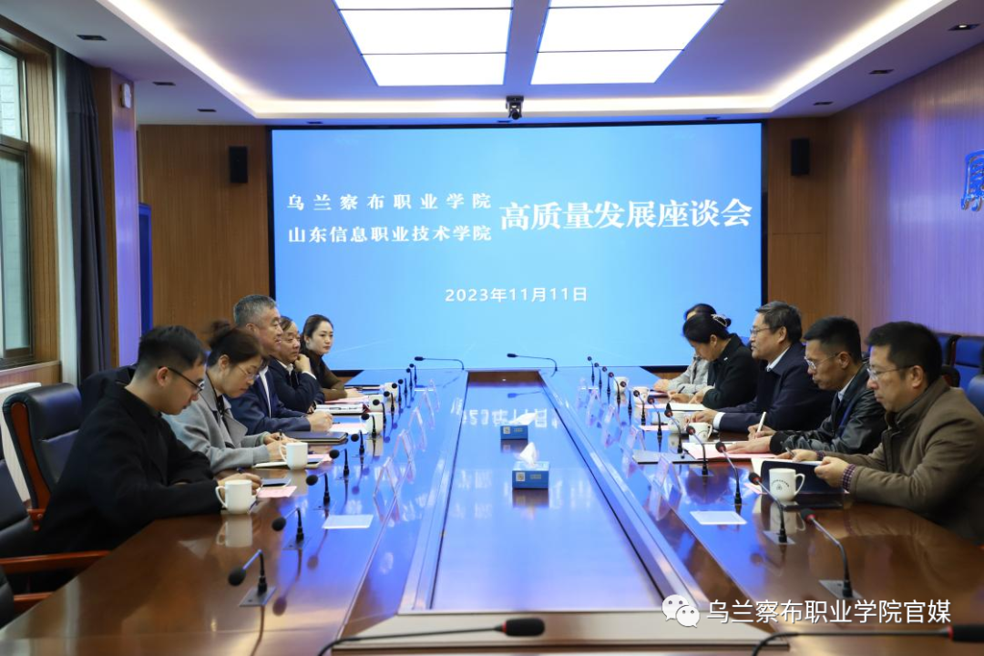 11月11日,山东信息职业技术学院党委副书记、院长丁利文等接待了调研组,双方举行了高质量发展座谈会。山东信息职业技术学院是山东省人民政府批准设立、教育部备案的省属公办全日制高等职业院校,隶属于山东省工业和信息化厅,是山东省创立最早、专业最全、规模最大的电子信息类高职院校。丁院长对郭书记一行的到来表示热烈的欢迎,介绍了山东信息职业技术学院的基本情况。双方就各自学院的专业设置,技能竞赛、校企合作、招生就业等方面进行了交流。郭书记对今年以来山东信息职业技术学院取得的各项成绩表示祝贺,表示我们要紧跟电子信息技术发展趋势,积极担当作为,进一步强化沟通交流和合作,充分发挥自身优势,在加强专业群建设及干部队伍建设等方面,出实招、出好招,促进两所院校共同实现高质量发展。会后,参观了软件协同创新中心、VR协同创新中心,实地考察了解了学院在学生管理、专业实训室建设等具体做法和成效。