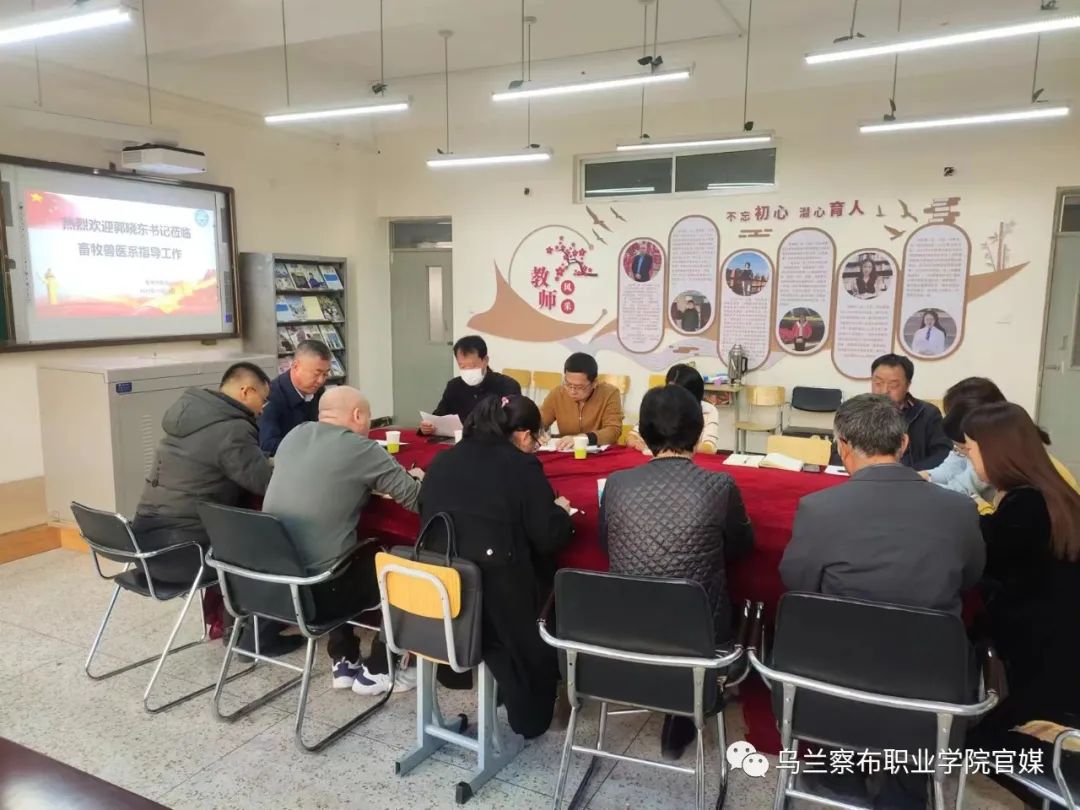 2023年11月6日,院党委书记郭晓东、副院长白永平一行到畜牧兽医系开展调研。系党总支书记薛殿有、副书记王艳军、副主任王延卓、办公室、教务科、学工办以及各教研室负责人参加了此次调研。