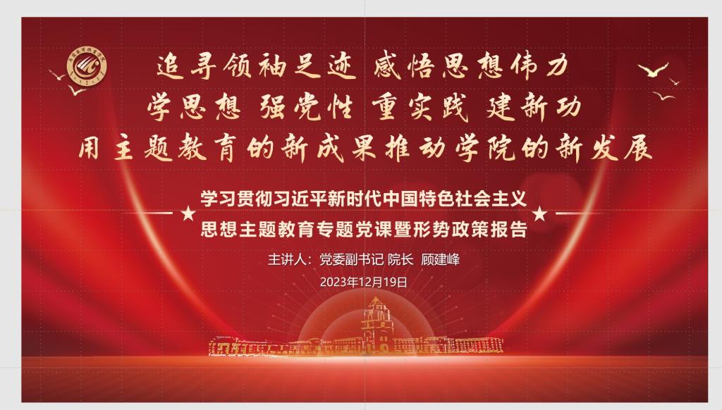 顾建峰院长以《追寻领袖足迹,感悟思想伟力,学思想、强党性、重实践、建新功,用主题教育的新成果推动学院的新发展》为题,围绕学习贯彻习近平新时代中国特色社会主义思想及总书记的实践历程同大家进行交流。本次专题党课从追寻领袖足迹,感悟思想伟力,在“学思想”中汲取信仰的力量,淬炼忠诚品格;追寻领袖足迹,感悟思想伟力,在“强党性”中汲取人格的力量,淬炼为民情怀;追寻领袖足迹,感悟思想伟力,在“重实践”中汲取精神的力量,淬炼过硬本领;追寻领袖足迹,感悟思想伟力,在“建新功”中汲取奋斗的力量,淬炼务实作风等方面进行了详细讲解。