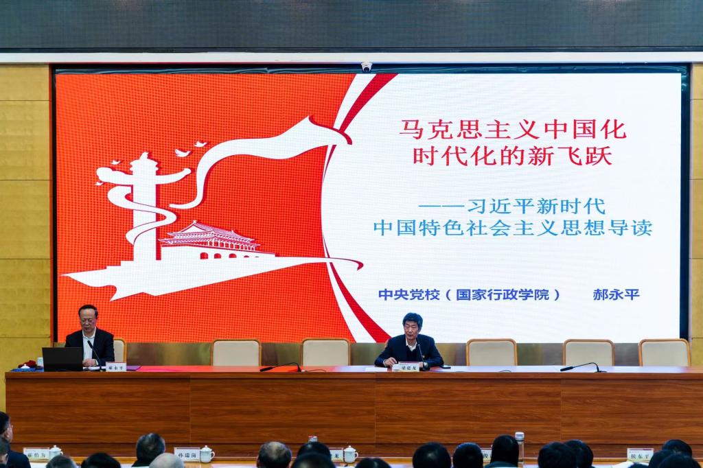 12月20日下午,best365中国官方网站荣幸地邀请到中央党校(国家行政学院)副秘书长、教授、博士生导师,中国辩证唯物主义研究会副会长郝永平教授来作专题讲座。院党委副书记梁建龙主持会议,党委班子成员、副处以上领导干部、全体党员、入党积极分子及部分教师代表、团学干部代表聆听讲座。