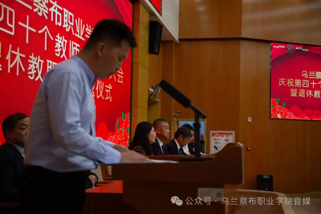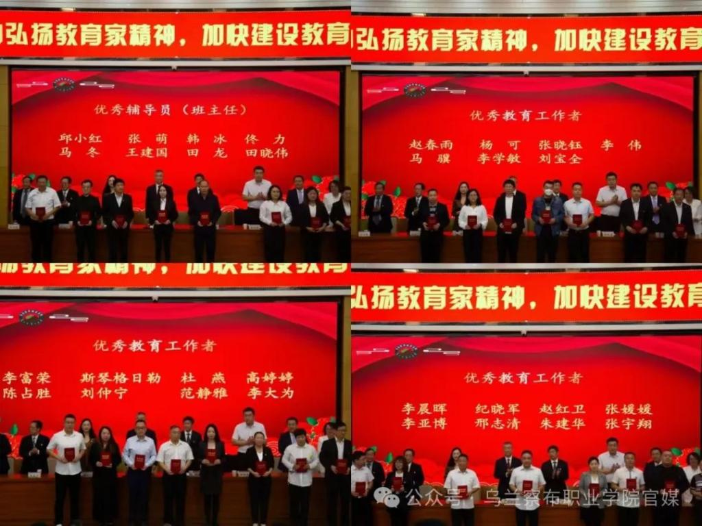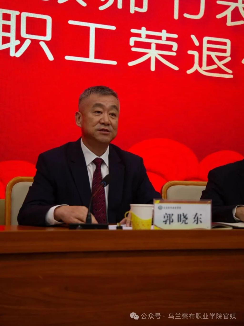 学院党委书记郭晓东代表学院党委,向受表彰的优秀教师,优秀教育工作者,优秀辅导员、班主任表示热烈的祝贺和崇高的敬意;向默默耕耘、辛勤工作在教学、科研、管理和服务岗位上的全体教职员工以及为学院建设和发展做出贡献的离退休老领导、老同志、老教师致以节日的祝贺和亲切的问候。并提出四点希望与教职工共勉,一要以身立教,做崇高师德的力行者。学为人师,行为世范。“育有德之人,要靠有德之师”。全体教师要以高尚的人格感染人,以文明的举止影响人,以和蔼的态度对待人,以博大的胸怀爱护人,努力争做“四有”好老师;二要爱生如子,做优秀的人类灵魂工程师。教师应把爱的理念贯穿于教育教学、管理和服务工作之中,坚持以人为本,以父母之心、兄长之情,把“教育、引导、鼓舞学生”同“尊重、理解、关心学生”结合起来,既注重思想道德教育,又注重对学生的人文关怀和心理疏导,关爱学生的进步、关注学生的困难、关心学生的就业,把对学生的关爱渗透在教育教学、管理、服务等工作的方方面面、各个环节,以情动人、以情育人、以情化人,把对家国的爱、对教育的爱、对学生的爱融为一体,做一名有温度的好老师;三要终身学习,做职业教育的行家里手。作为学院人才培养的主力军,各位教师要潜心研究学问、专注教书育人,努力成为职业教育的大先生。要始终保持对专业知识的敏锐度,要注重自身实践能力的培养和提升,要掌握实际操作技能和行业经验,要积极探索和运用新的教学理念与方法;四要担当作为,做乌职院高质量发展的践行者和参与者。全院各级党组织和全体党员要充分发挥战斗堡垒和先锋模范作用,切实把思想和行动统一到院党委的决策部署上来,把力量和智慧凝聚到推动学院发展大局上来,要以先进典型为榜样,牢记宗旨,勇于创新,团结一致,攻坚克难,在教学、科研、管理和服务的第一线履职尽责,进一步汇聚起推进学院改革发展的正能量,全力推动学院各项工作高质量发展。
