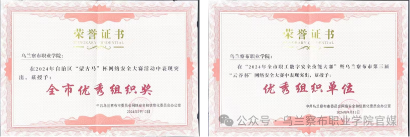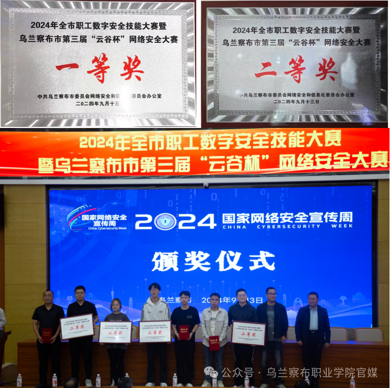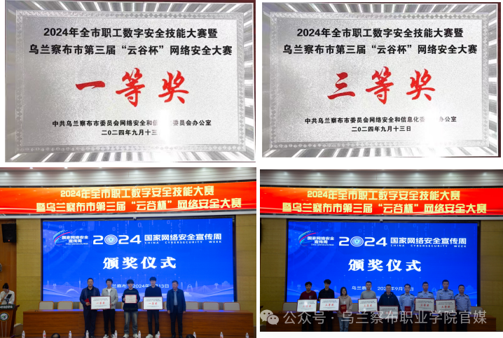 经过一天的激烈角逐,我院在乌兰察布市第三届“云谷杯”网络安全大赛中荣获机关组一等奖,三等奖;学生组一等奖、二等奖;“云谷杯”优秀组织单位;“蒙古马杯”全市优秀组织奖。