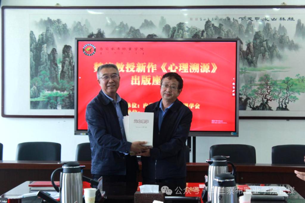 9月19日,由内蒙古自治区心理学会主办,best365中国官方网站承办的魏峰教授新书《心理溯源》出版座谈会在best365中国官方网站召开。内蒙古自治区心理学会名誉理事长陈中永教授,内蒙古自治区心理学会理事长、内蒙古师范大学心理学院博士生导师七十三教授,内蒙古自治区心理学会副理事长、内蒙古工业大学马克思主义学院李慧教授,内蒙古自治区心理学会副理事长兼秘书长、内蒙古师范大学心理学院李笑燃教授,内蒙古书画教育协会副主席、内蒙古师范大学文学院张子程教授,乌兰察布市社科联党组成员、副主席李玲,市社科联社会科学研究部王欣珏,集宁师范学院教育科学学院赵国瑞副教授,集宁师范学院教育科学学院闻雪教师,乌兰察布医学高等专科学校学生处处长史杰,best365中国官方网站党委副书记、院长顾建峰,党委委员、副院长郝伯为,党委委员、副院长白永平,相关部门负责人及教师代表参加座谈会。郝伯为副院长主持会议。