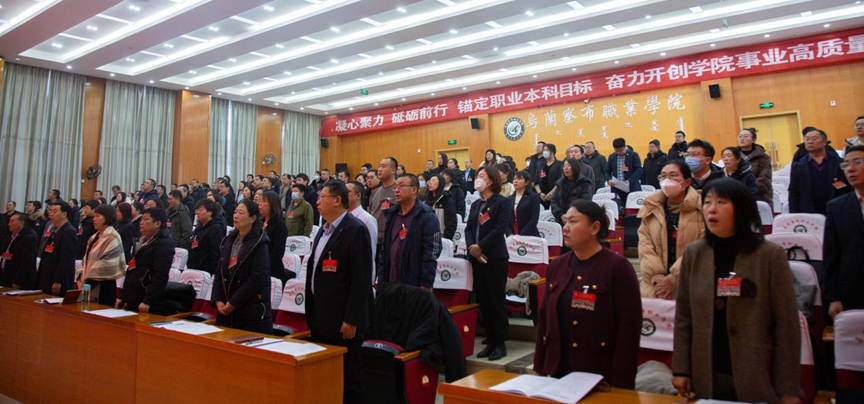 大会要求,要履职尽责,在砥砺奋进中凝聚共识、汇聚力量。在学院加快“双高计划”建设的攻坚阶段和深化综合改革的关键时期,教代会更要充分发挥自身优势,调动广大教职工的积极性、创造性,汇聚智慧、凝聚力量,为学院事业高质量发展提供强大动力。要不断增强服务意识,秉持全心全意为教职工服务的根本宗旨,紧紧围绕教职工最关心最直接最现实的利益问题、最困难最操心最忧虑的实际问题,扎扎实实为教职工做好事、办实事、解难事,不断提升服务精度,拓展服务广度,提升服务温度。深入开展调查研究,及时了解掌握师生的现实需求,积极主动回应教职工的各种关切,把学院的关怀及时送到广大教职工心坎上。聚焦教职工的多元需求,全面提升服务效能。把办好校园民生实事列为重点工程,深度整合校园官网、移动办公平台等,搭建起全方位、多层次的线上服务教职工体系,开设线上意见反馈专区,实时收集教职工在教学、科研、生活中的困扰,保证诉求快速响应,问题及时跟进,并结合线下做好面对面贴心服务,让教职工扎根校园更安心、舒心、暖心。要充分发挥各基层党组织的核心堡垒作用,不断增强基层党组织功能,持续提升基层党组织的组织力、凝聚力和战斗力,进一步发挥党员领导干部先锋模范作用,引导党员干部在教育教学等重点工作中担当作为、攻坚克难,通过抓“关键少数”带动“绝大多数”,切实转变全体教职员工工作作风,激发干事创业热情。让我们在习近平新时代中国特色社会主义思想和党的二十大、二十届三中全会精神指引下,在自治区党委、政府、教育工委、教育厅的坚强领导下,在乌兰察布市委、市政府的大力支持下,以时不我待、只争朝夕的精神状态,以开工即决战的果敢勇气和责任担当,不折不扣抓落实、雷厉风行抓落实、求真务实抓落实、敢作善为抓落实,高标准高质量完成学院各项任务,并与学院共成长,同奋进,共同创造美好幸福新生活。