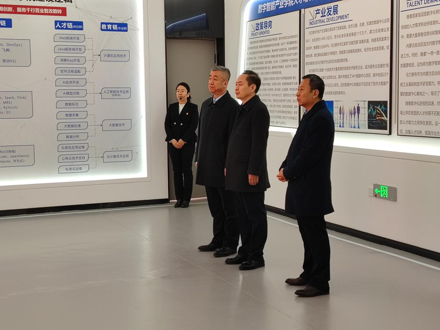 3月13日,内蒙古自治区教育厅党组书记、厅长杜汇良来我院华为数字智能产业学院调研指导发展建设工作。