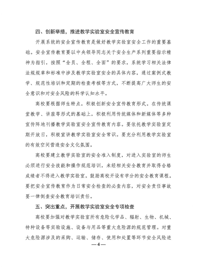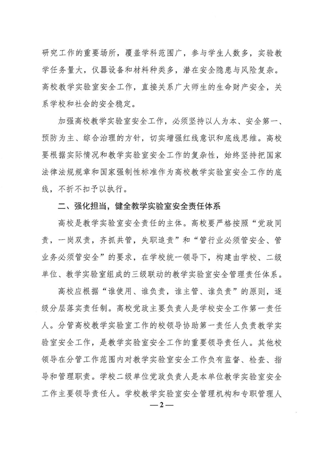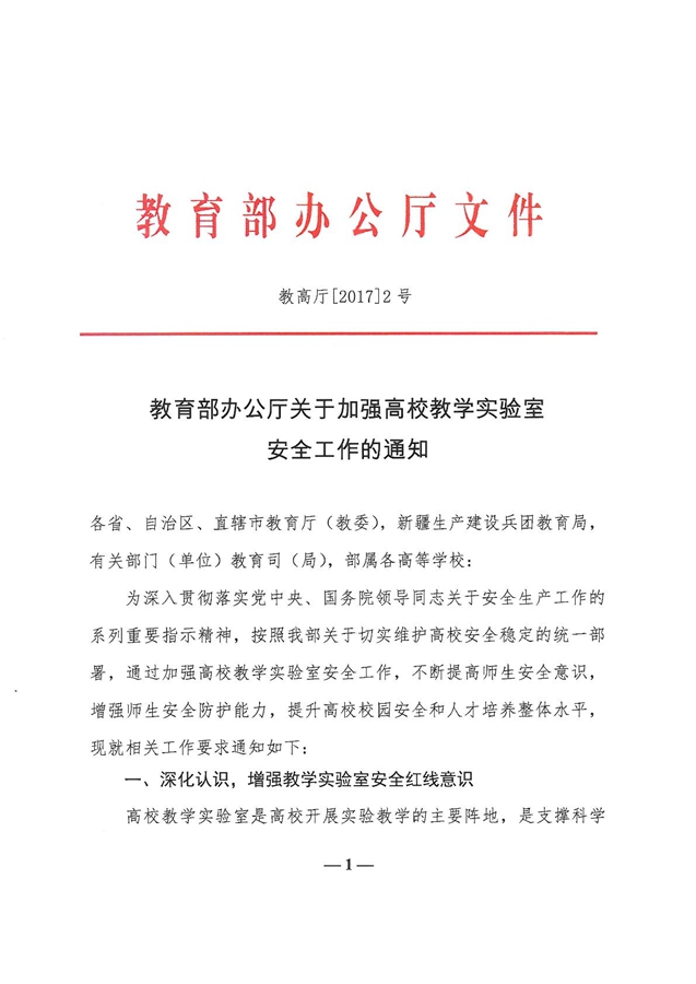 教育部办公厅关于加强高校教学实验室安全工作的通知