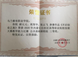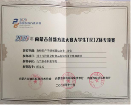 本年度,学院组织教师积极参加内蒙古创新方法大赛,荣获大学生TRIZ杯专项赛奖项1项,并获得优秀组织奖。