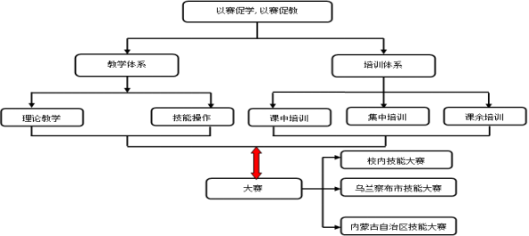 学院对技能大赛分级分类管理,切实保障技能大赛的有效开展,充分发挥多部门之间的组织协同作用,促进技能大赛工作“规模化、系列化、品牌化”。坚持“国家、自治区、学院”三级大赛运行机制,按照技能大赛的目的、形式、内容将技能大赛分为不同的类型,教师指导技能大赛获奖在职称晋升、岗位评定给与激励,学生参赛获奖作为评奖评优和学分认定的依据。