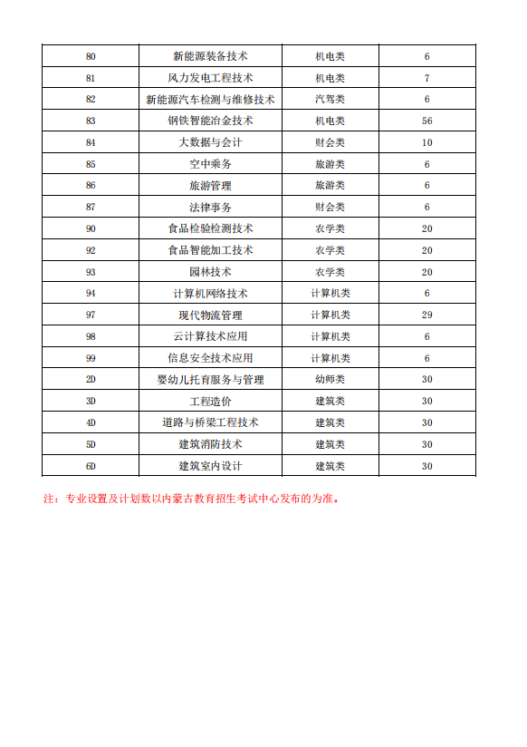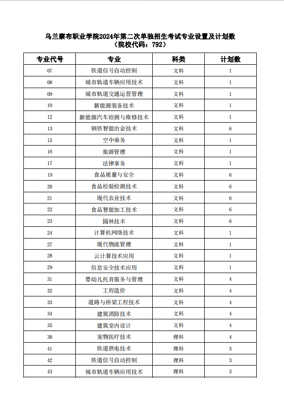 best365中国官方网站2024年第二次单独招生考试专业设置及计划数