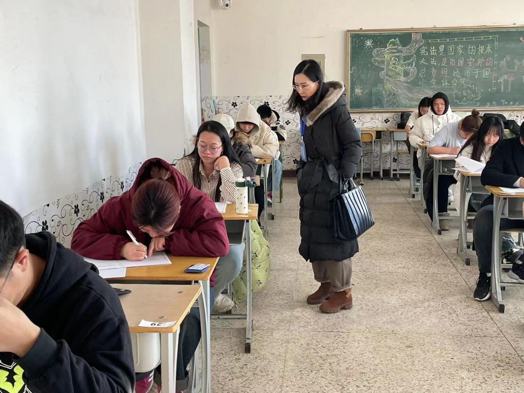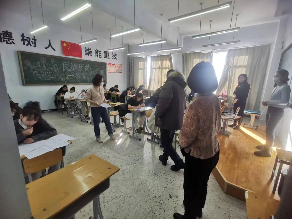 考试期间,学院党委委员、副院长周俊霞深入考场,对考试组织工作、考试课程、考场环境、考场秩序、监考教师履职等情况进行了细致检查,了解了考试组织安排和学生的答题情况。教务处会同质量管理与审计处分组对各考场开展期末考试巡考工作,仔细检查考场秩序及设施环境、监考教师履职、学生遵守考纪等情况。同时各系(部)领导也深入考场进行巡查。