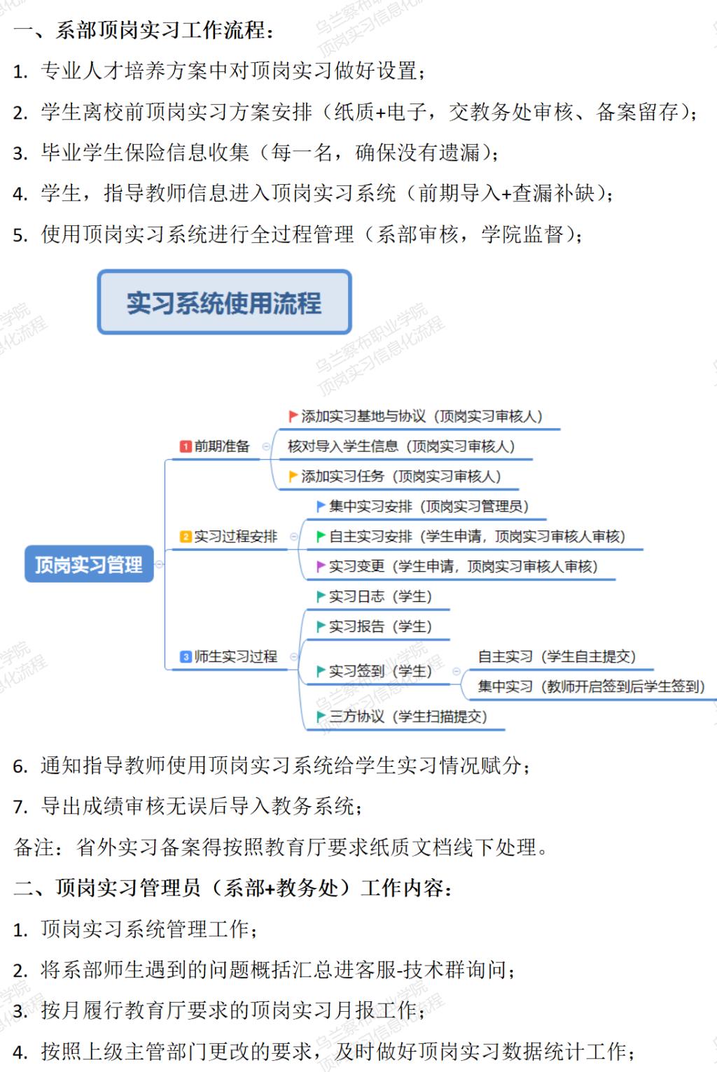 根据教育厅对高职院校校外实习管理工作的要求,我校需组织各系定期上报实习日常管理情况,具体上报内容和要求参见附件3。