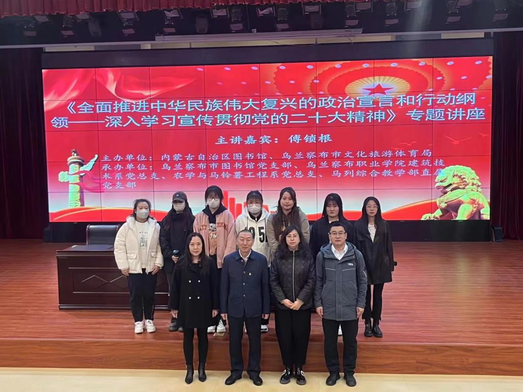 为深入学习宣传贯彻党的二十大精神,进一步凝聚思想共识,激发奋进前行力量。3月6日上午,农学与马铃薯工程系党总支联合马列综合教学部直属党支部、建筑技术系党总支组织系部师生党员及积极分子在乌兰察布市博物馆参加了党的二十大精神宣讲会,会议邀请内蒙古大学马克思主义学院副院长、教授傅锁根作了题为《全面推进中华民族伟大复兴的政治宣言和行动纲领——深入学习宣传贯彻党的二十大精神》专题讲座。