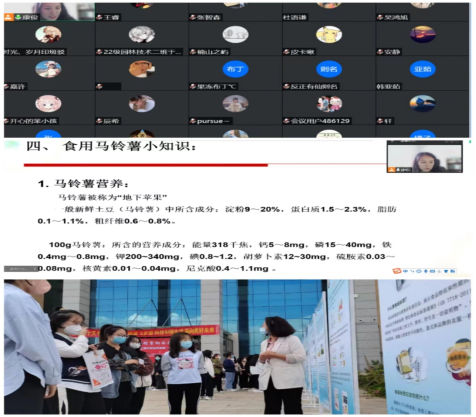 农学与马铃薯工程系康俊老师在线上为我系同学们科普了马铃薯的相关知识,从马铃薯的来源、马铃薯的种植、马铃薯的营养价值以及马铃薯的食用等方面进行了科普,通过这次讲座,同学们对马铃薯及马铃薯主粮化有了更深刻的了解。
