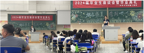2024年6月29日,农学与马铃薯工程系于教学楼A105举行2024届毕业生座谈会暨毕业典礼。系党总支书记王根同、主任刘海英、副书记高文霞、学工办主任李素英及系全体教师、在校生参加了此次典礼。