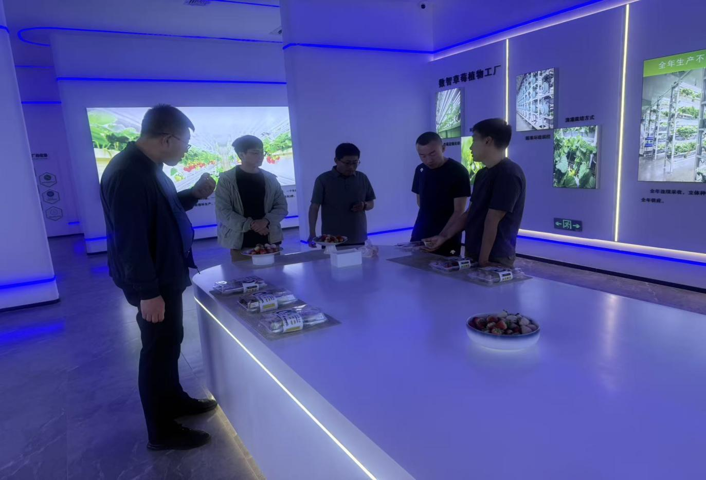 郝院长一行深入生产车间、研发实验室等区域,实地参观了草莓从育苗、生长到采收的全过程,与企业技术人员就植物工厂的核心技术、生产管理经验等方面进行了深入交流。青年教师们也积极与企业技术骨干探讨教学实践中的技术难点和产业前沿动态,为后续将企业新技术、新工艺融入教学内容积累素材。