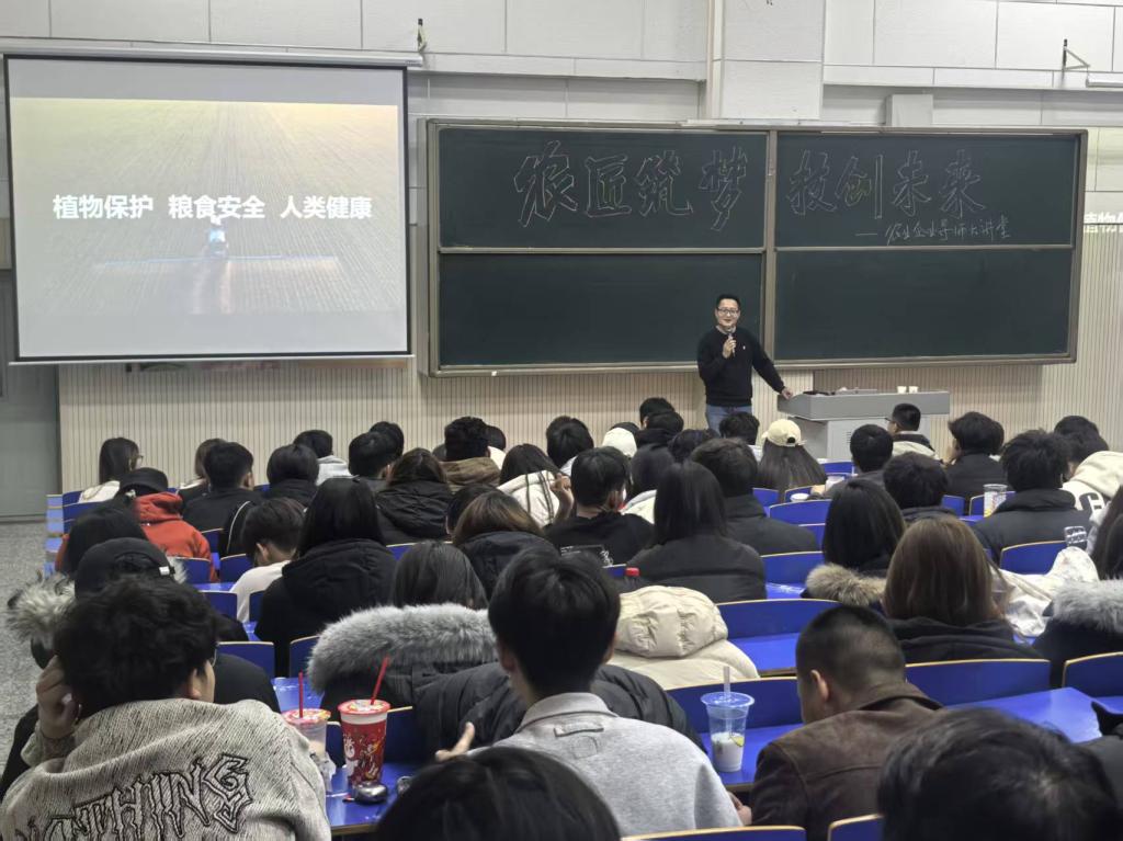 本次大讲堂汇聚行业领军企业资深专家,带来多场实用知识盛宴。11月6日,九方现代农服吴建强总经理以“职业环境与职业规划”为题,从产业格局、人才需求角度梳理职业脉络,强调“现代农业需智能化、专业化复合型人才”,同学们围绕职业选择、能力提升积极互动。11月7日,美兰德企业杨显聪总经理聚焦“植物保护、粮食安全与人类健康”关联,用案例阐释植保对保产量、提品质的核心作用,让同学们深刻认识专业社会价值。11月10日,西安万盈农业科技有限公司寇征副总团队分享“植物营养方案”,以玉米为例解析植物生长周期营养需求、病虫害绿色防控等实操技术,并现场解答作物栽培、营养管理等专业疑问,实现理论与实践精准对接,坚定了同学们学好专业的决心。