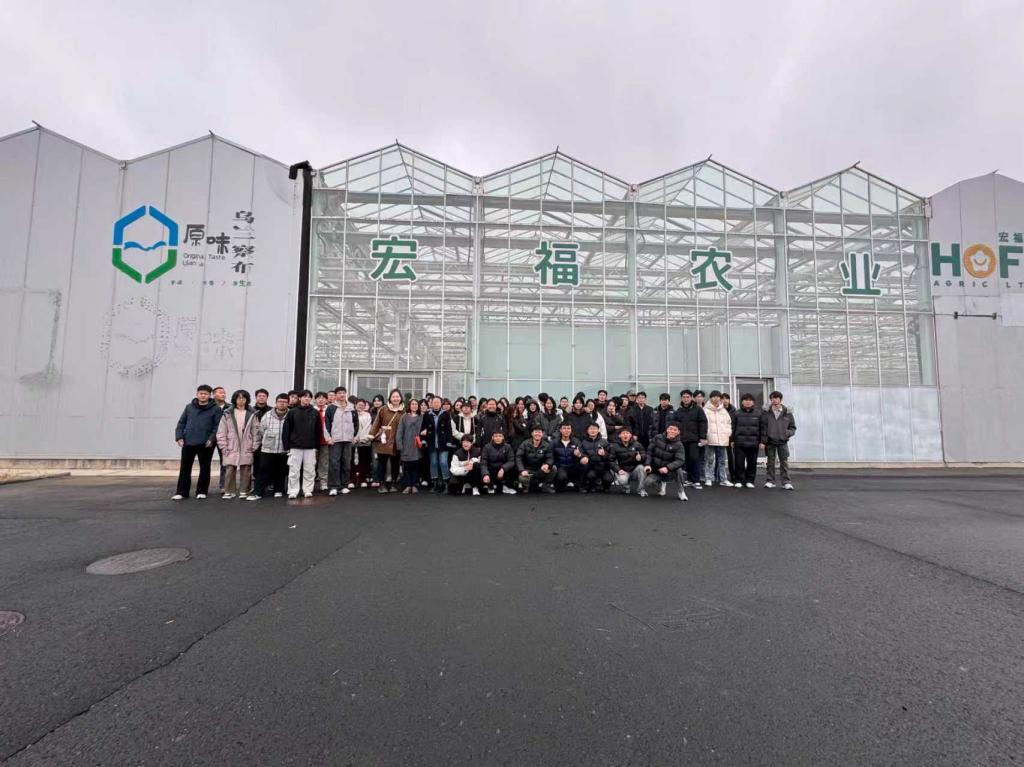 理论学习之外,实地参访让同学们实现“从课堂到田间”的跨越。11月8日,同学们走进智慧农业标杆企业——宏福农业,近距离观摩物联网监测、大数据分析、智能灌溉等技术的集成应用,直观感受科技对农业生产的变革力量。随后前往察右前旗数智草莓基地,基地张经理带领参观智能化种植温室,详解温湿度、光照等环境因子智能调控系统及水肥一体化精准管理技术,激发了同学们对专业技术应用的探索热情。
