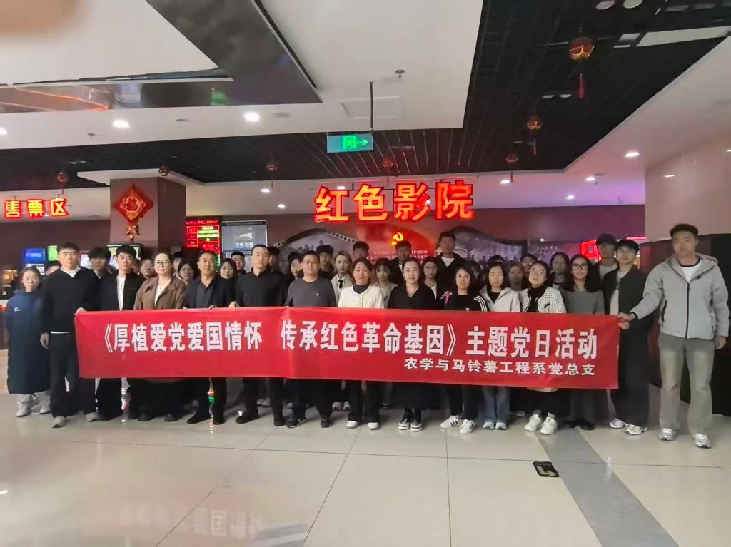 为深入学习贯彻习近平新时代中国特色社会主义思想和党的二十大精神,厚植师生党员爱党爱国情怀,传承红色革命基因,10月15日农学与马铃薯工程系党总支组织全体师生党员、入党积极分子,在聚景红色影院集中观看红色电影《志愿军:浴血和平》,沉浸式感悟红色历史。